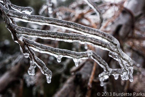 I have to admit I almost didn't bother to go out. I could just imagine all the cameras out there clicking away and didn't see why I should add to the deluge of "ice" shots. Well I'm sure they were and a lot of them have already been appearing on facebook. More ice pictures probably didn't need to be taken. But I'm glad I got off my duff and went out. It's, happily, not all that common an occurrence and it was an undeniably wonderful photo op. And I also almost hate to admit that these are the first pictures I've taken since getting home from our trip - almost three weeks ago. That's just too long to have the cameras sitting idle. They (I) need the exercise and constant practice to keep the eye and the head in shape.